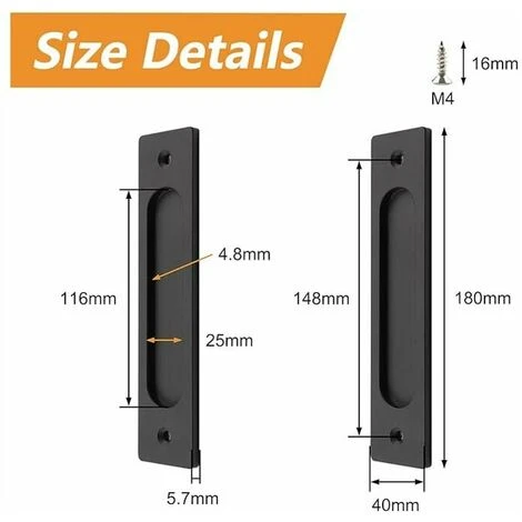 Style moderne : cette poignée de porte coulissante rectangulaire encastrée a un design moderne, noir mat et un design astucieux encastré, ce qui la fait se fondre parfaitement avec d’autres meubles modernes de votre maison, apportant une ambiance urbaine à votre espaceMatériau de qualité supérieure : la poignée est fabriquée en alliage d’aluminium sélectionné, et la surface est galvanisée, ce qui est confortable au toucher et ne rouille pas et ne se corrode pas facilement. La méthode de production monobloc le rend difficile à briser.Large application : la couleur classique assortie est adaptée à la plupart des portes intérieures et extérieures, telles que les portes coulissantes, les portes de poche et les portes pliantes. Convient également pour les armoires, armoires, armoires de salle de bain et autres meublesFacile à installer : contrairement à la poignée intégrée générale, nous n’avons pas besoin de creuser des rainures pour l’installation, en utilisant pleinement l’épaisseur de la poignée elle-même, vous avez seulement besoin de fixer la poignée avec les vis fournies pour terminer l’installationContenu de l’emballage : la taille de chaque poignée est de 180 x 40 mm (L x l). La profondeur de rainure est de 4,8 mm. Veuillez vérifier la taille avant d’acheter