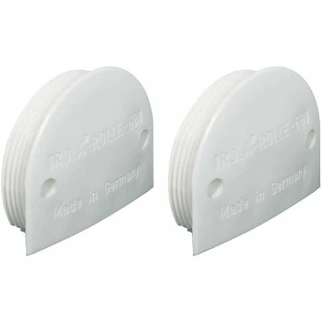 2x Chariot pour portes coulissantes linéaires ; Avec axe renforcé et galet convexe ; Largeur = 35mm ; Matières = Chariot en plastique polyamide et Axe en acier ; Couleurs = Chariot blanc et Galet noir ; Pour poids de vantail ? 25kg ; Pour épaisseur de vantail ? 16mm