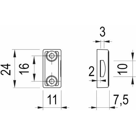 Lot de 2 gâches pour verrou ; Dimensions extérieures = 11x24x7,5mm ; Ouverture = 3x10mm ; En plastique ; Idéal pour petite fixation, meuble, camping car, loisir ;