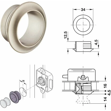 Lot de deux rosaces rondes ; Pour serrures espagnolettes ou serrures à appliquer Push-Lock ; Epaisseur de plateau = 16mm ; Plastique ;