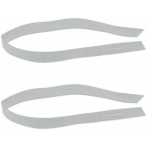 2x Sangle d’attache de tablier de volet roulant ; Matère = Polyester tissé ; Couleur = Gris ; Largeur = 20mm ; Longueur = 450mm ; Réglable grace à une fente pré-découpée ; La sangle permet l’accrochage du tablier sur le tube en association avec des agrafes et des réglettes