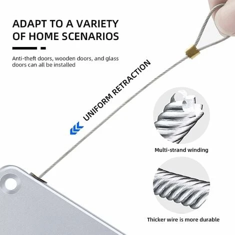 【1000g Super Pull】Le câble en acier de haute qualité de 1,2 m a passé plusieurs fois les tests de traction et d’élasticité. Il a un fort pouvoir de traction et n’est pas facile à casser, pour éviter la panique, oublier de fermer la porte et obtenir un temps de sensation plus sûr.
