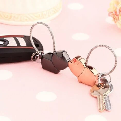 Le paquet comprend une paire de porte-clés, noir brillant pour hommes et or rose pour femme.La Nez de cochon est magnétique, elle peut venir ensemble.