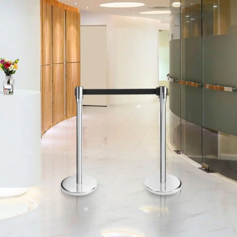 Les poteaux de délimitation sont fabriqués en acier. Des bandes de délimitation noirs et extensibles sont intégrées dedans.