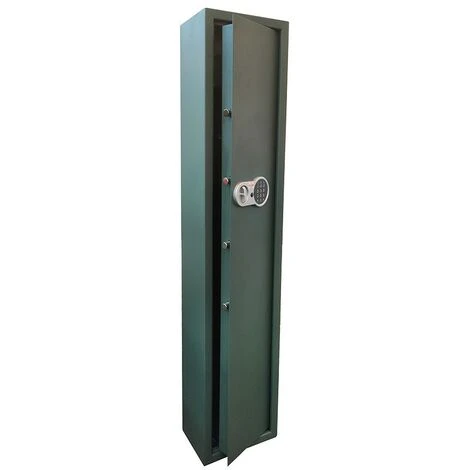 Conçue pour les chasseurs et les amateurs d’armes et de carabines, cette grande armoire blindée est fabriquée en acier spécial totalement résistant aux tentatives d’effraction et construite conformément aux lois en vigueur pour ranger de manière ordonnée et sûre les carabines à canon long sur le rack à 5 places, et rangez des armes, des munitions ou de petits objets de valeur grâce au coffre supplémentaire interne pratique avec clé. Le coffre à fusil est équipé d’une serrure à combinaison électronique digitale et de 4 pênes en acier d’un diamètre de 22 mm chacun qui garantissent une protection maximale contre les risques éventuels de vol et d’incendie dus à une mauvaise utilisation.