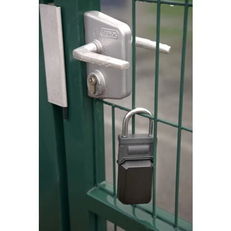 Fabrication du corps en acier de grande résistance contre les coups et les agressions au marteau et à la scie. Il est également résistant aux intempéries. Dimensions : 13,4 cm de haut, 7 cm de large, 3,7 cm de profondeur