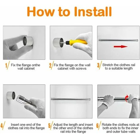 【Large gamme d’applications】Les tringles à rideaux, les tringles de garde-robe, les cintres, les supports à chaussures peuvent tous être ajustés en longueur.