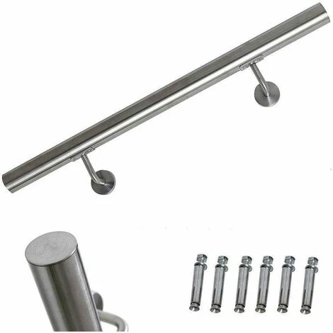 Le set comporte deux fixations murales ainsi que le matériel de montage nécessaire. La rampe est faite en inox brossé et est ainsi résistante: vous pouvez l’utiliser aussi bien à l’intérieur qu’à l’extérieur ou dans les pièces humides comme la cuisine ou la salle de bain, mais aussi devant votre porte d’entrée ou dans votre jardin.