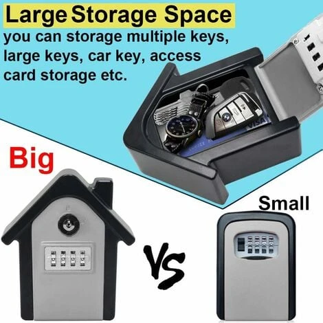 Grand & Rangement Sécurisé: La capacité du grand boite à clés à code est suffisamment grande (taille intérieure environ 4,5 * 3,7 * 2 pouces) pour placer clés de maison, bureau ou autres grandes clés de voiture; Et vous pouvez également stocker quelques petites choses si nécessaire, telles que cartes de crédit, cartes d’identité etc.