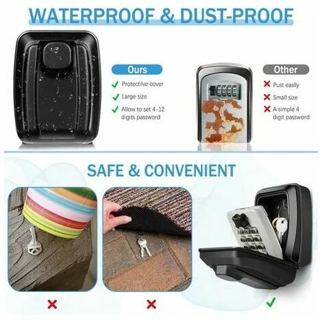 【Plus de Fiabilité】Our boite clef code utilise une combinaison à 12 chiffres offrant des milliers de combinaisons pour assurer le plus haut niveau de sécurité, bien plus que les modèles à 4 cadrans, beaucoup plus difficiles à craquer. Il est facile de