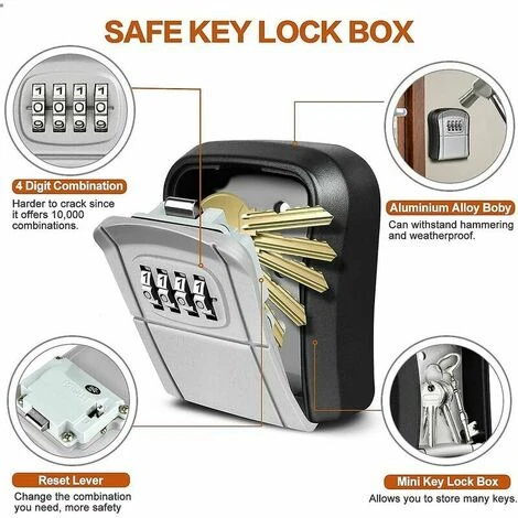 [LARGE APPLICATION] – C’est une excellente boîte à code pour stocker les clés et les cartes bancaires, etc. [HAUTE SÉCURITÉ] – Notre boîte à clés murale est composée d’un corps solide. Alliage d’aluminium de haute qualité et mécanisme de verrouillage en acier durable, qui fournit une résistance supplémentaire à la boîte à clés extérieure pour résister aux attaques de martelage ou de perçage. [NUMÉROS FIABLES COMBINÉS À 4 VOIES] – Utilise une combinaison à 4 chiffres pour une protection renforcée. [TAILLE MINI & ; ampli ; UTILISATION FACILE] – Taille externe (H x L x P) : 3,7 x 2,95 x 1,37 pouces, Taille interne (H x L x P) : 3,2 x 2,75 x 1,1 pouces. [INSTALLATION FACILE À UTILISER] – Seulement 4 étapes simples pour terminer l’installation : Dessinez le contour des vis Percez les trous Clouez les ancrages expansés Installez la boîte à l’aide de vis.