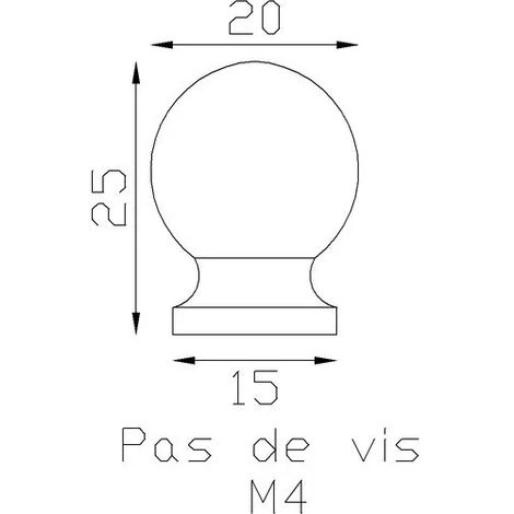 Hauteur de 25mm. Diamètre de 20mm. La base mesure 15mm de diamètre. Taille du filetage métrique en M4.