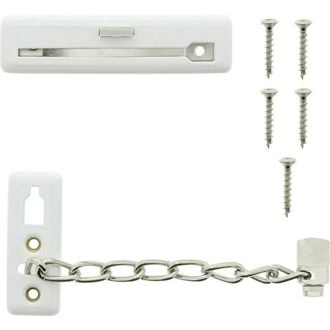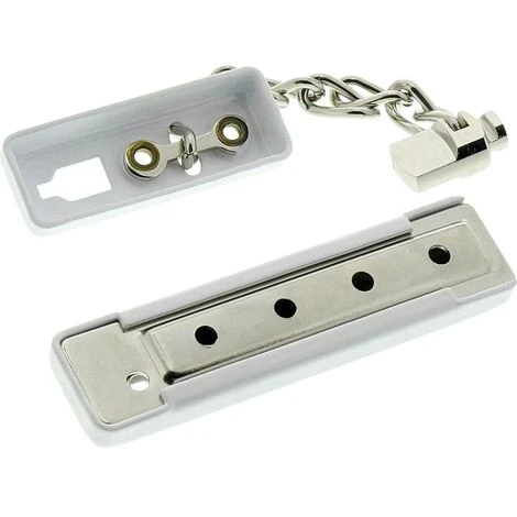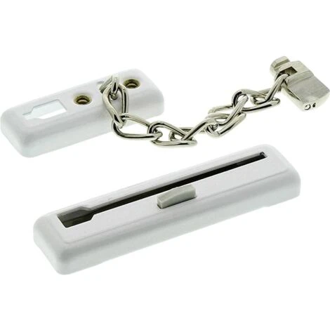 La chaîne de porte BURG-WÄCHTER TK 64 avec sécurité enfant a une longueur d’environ 13 cm. La plaque de cadre mesure 64 x 22 mm (H x l). La plaque de fixation mesure 26 x 102 mm (H x l). Elle est livrée avec une notice de montage et des vis.