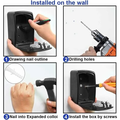 PRATIQUE – La boîte à clé fournit 4 vis desserrées et 4 chevilles d’expansion pour la fixation au mur. Ce manuel vous donnera des conseils utiles pour l’utilisation de ce produit. En utilisant un cadenas à combinaison à 4 chiffres, vous n’avez pas besoin