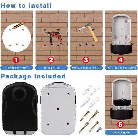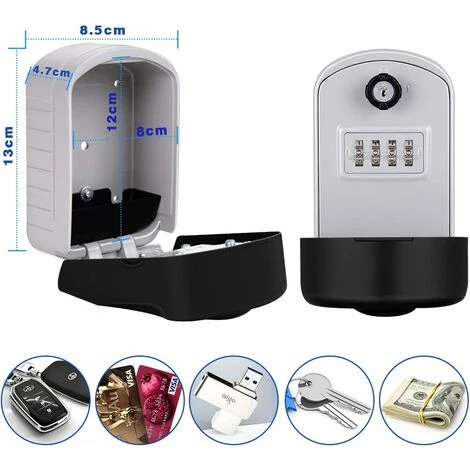 【Grand espace de stockage sécurisé】La boîte à clés sécurisée à l’extérieur mesure 13 (L) * 8,5 (W) * 4,5 (H) cm, la taille intérieure est de 12 (L) * 8 (W) cm, un tiers plus grande que la boîte à clés sécurisée générale sur le marché. peut organiser plusieurs clés ou votre clé de rechange, carte de crédit, espèces, clé de voiture, etc. Plus sûr que la clé sous le paillasson ou sous une pierre, un coffre à clés peut sécuriser votre clé.