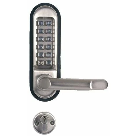 Contrôle d’accès d’appoint intégralement mécanique conçu pour une utilisation sur des portes ayant une fréquence d’utilisation moyenne. Installation à l’intérieur ou à l’extérieur. 4000 combinaisons possibles. Montage sur serrure à mortaiser existante, axe 50 mm. Libre passage intégré au boîtier. Béquille débrayable et réversible. Pour porte d’épaisseur : 25 à 55 mm Corps et bouton en zamak, touches en inox.