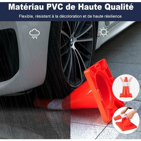 - 【PVC de haute qualité:】 COSTWAY cônes de sécurité en PVC de haute qualité est sûr, sans odeur, flexible, résistant à la décoloration au test des conditions météorologiques extrêmes extérieures. Le cône de signalisation à haute résilience peut retrouver sa forme d’origine rapidement après avoir reçu un fort impact. Remarque : Ne convient pas aux temps extrêmement froids ou chauds.