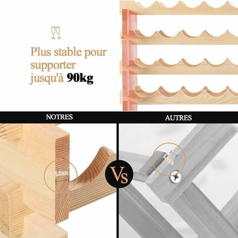 - Fabriqué en bois de pin naturel non fini, cette etagère en bouteilles de vin est en construction solide et peut vous offrir des années de vie.