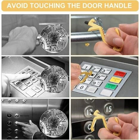Évitez de toucher quoi que ce soit: l’utilisation de l’outil d’ouverture de porte peut éviter le contact direct avec la poignée de porte et garder vos mains propres, ce qui peut vous aider à rester à l’écart des bactéries et des virus, et il peut également être utilisé avec un ascenseur, un guichet automatique, un interrupteur, un distributeur automatique , salle de bains