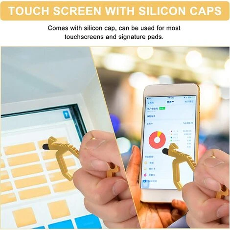 Écran tactile avec capuchons en silicone: chaque ouvre-porte équipé d’un capuchon en silicone, qui peut être utilisé sur les téléphones mobiles à écran tactile, à utiliser dans les guichets automatiques bancaires et les machines à écran tactile en libre-service dans les hôpitaux, ce qui peut grandement vous aider à éviter tout contact avec des bactéries