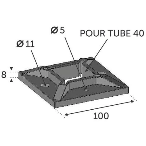 - Embase à souder pour un tube carré 40x40mm (le tube rentre à l’intérieur de l’embase).