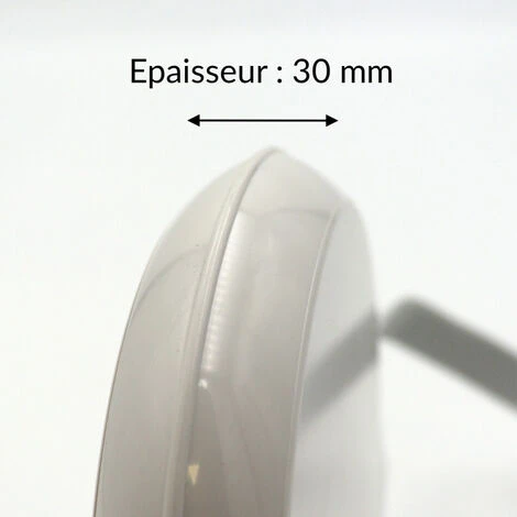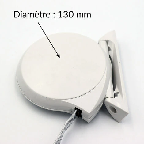 La finition est en PVC blanche de qualité. Les dimensions du produit sont de 130 mm x 130 mm x 30 mm. La longueur de la sangle est de 5,5 mètres pour 14 mm de largeur. La capacité moyenne de rappel pour la sangle est de 4,5 mètres maxi.
