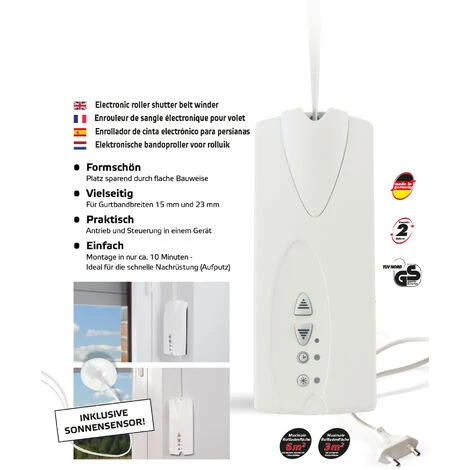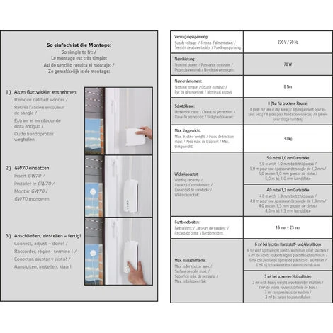 - Pour volets roulants légers en matière plastique/aluminium d’une surface jusqu’à 5 m² et pour volets roulants lourds en bois d’une surface jusqu’à 2,5 m²
