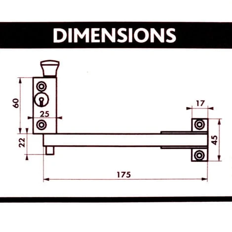 – Dimensions : coffre (Hxl) 60×25 mm – Bras L : 175 mm