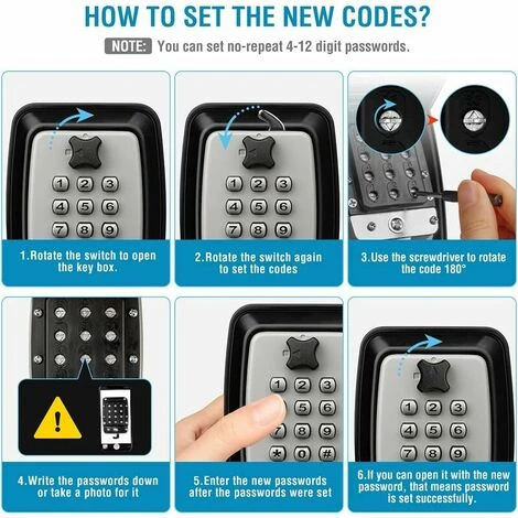 Installation rapide – L =’installation est très facile. Ce produit comprend une boîte à clés murale et un outil d =’installation pour assurer une installation stable sur n =’importe quel mur. Le mot de passe réinitialisable à 12 chiffres offre des milliers