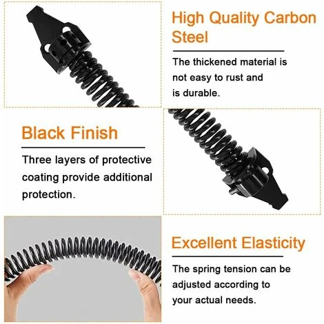 【Acier au carbone durable】 : ce ferme-porte à ressort est fabriqué en acier au carbone de haute qualité. Le matériau est épais et durable, pas facile à déformer. La surface a une finition chromée lisse pour une protection supplémentaire, réduit la friction et le bruit afin que vous puissiez l’utiliser en toute confiance.