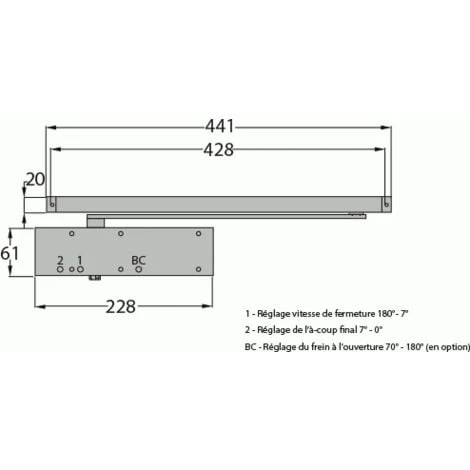 - Réglages vitesse de fermeture et accélération finale par vis pointeau en face avant dissimulées sous le capot.
