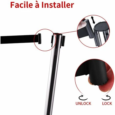 - Portée maximale de 2m de long ceinture rétractable entre deux chandeliers pour le contrôle des foules