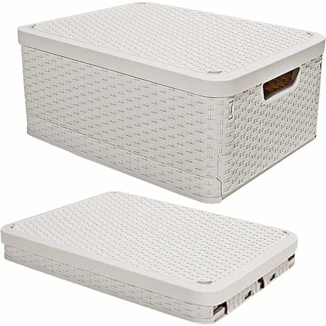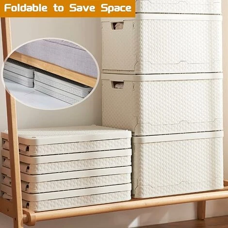 - 【Matériau de Haute Qualité】 : Les boite de rangement sont fabriqués en plastique solide et inodore (PP) et ont un design tissé, qui sont robustes et durables. Si jamais la boîte est sale, vous pouvez la laver ou l’essuyer avec un chiffon humide. dimensions : environ 43, 8 x 33 x 24.5 cm (Longueur x Largeur x Hauteur), dimensions plié : environ 43, 8 x 33 x 7 cm (Longueur x Largeur x Hauteur).