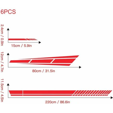 Taille : rétroviseur 15 x 2,4 cm (2 pièces), couverture 80 x 12 cm (2 pièces), 220 x 11,5 cm (2 pièces) sur les deux côtés du corps.