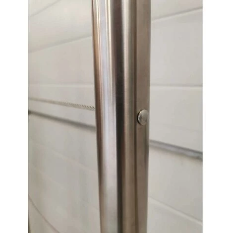 Un câble souple de diamètre ø4mm en inox est serti à une extrémité pour une installation simple et à l’autre extrémité, un tendeur à visser sur poteau.
