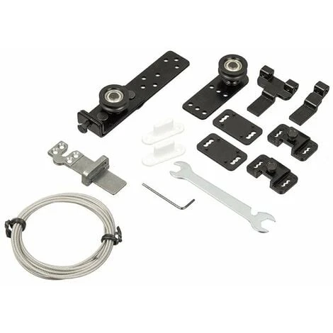 Kit pour l’ouverture progressive continue des vantaux ; 1,35m ; En tirant sur le vantail extérieur, le vantail central se déplace en douceur ; Il est possible de l’installer avec n’importe quel ensemble remplissant les conditions suivantes : distance entre le vantail et le guide 29–32 mm / distance entre les vantaux 37–60 mm (axes des vantaux individuels) ; Guides et raccords ne font pas partis du kit