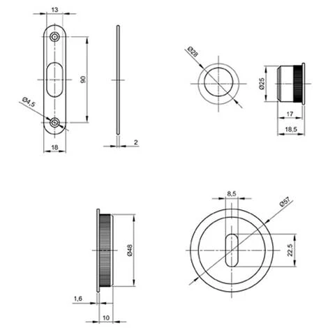 – 2 poignées rondes, Ø 57 mm