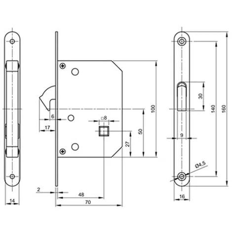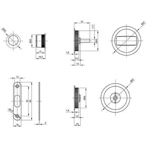 Serrure à crochet à encastrer avec poignées rondes et tire-doigt pour porte coulissante.