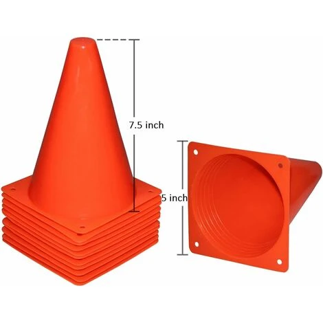 【Taille et Couleur】: Chaque cône d’entraînement mesure 19 cm(7,5 pouce)de hauteur et 12,7 cm (5 pouce)de diamètre base . Le lot de 12 ne comporte qu’une couleur (jaune, rouge, orange ou vert) et le lot de 24 comprend toutes les quatre, 6 cônes par couleur.