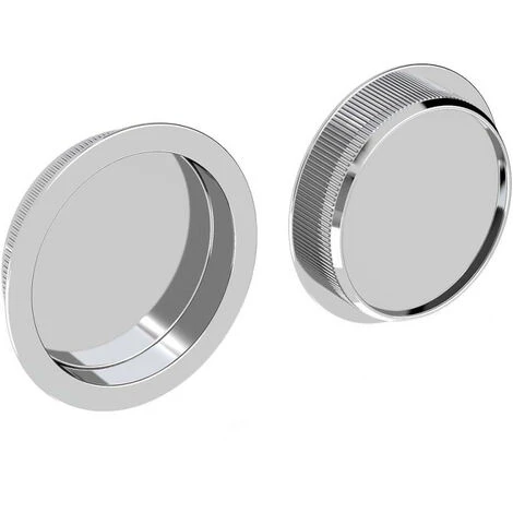 Lot de 2 poignées rondes à encastrer en acier finition chromé.