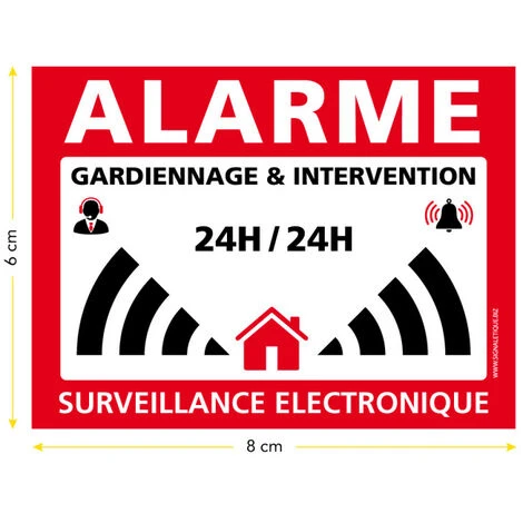 Notre vinyle dissuasif rectangulaire permet d’envoyer un message clair : Attention, maison protégée par une alarme ! Son format 80 mm x 60 mm offre une lisibilité optimale sans être trop intrusif. Ainsi, vous pouvez le placer où vous voulez (vitres, murs, portails, baies vitrées…). Robuste, résistant, il affronte les intempéries, les UV sans faiblir ! Ainsi, vous bénéficiez d’un autocollant Alarme Surveillance Électronique Gardiennage et Intervention 24h/24 aussi infaillible que votre dispositif de sécurité !