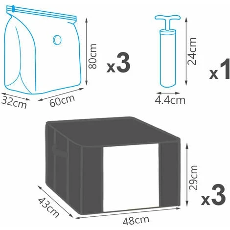 - Notre lot d’organisateur comprend 3 housses de rangement modèle EDENOO, 3 sacs sous vide et 1 pompe.