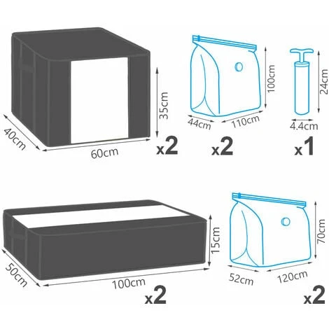 - Taille des sacs sous vide : 2pcs*110x44x100cm ; 2pcs*120x52x70cm