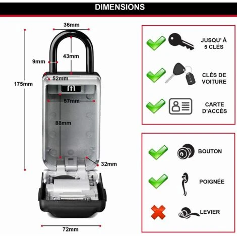 - Le design mural offre une installation permanente et sécurisée de votre coffre à clés.