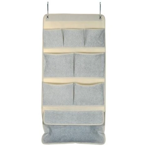 Rangement organisateur mural à suspendre avec 8 poches de la marque MSV. PRATIQUE: Applicable à n’importe quelle pièce, salon, chambre, chambre d’enfants, salle de bain. S’adapte facilement aux vêtements, jouets, accessoires, articles pour bébé, articles de toilette et bien plus encore! Elégant et durable avec deux crochets métalliques robustes pour plus de solidité et de durabilité. Dimensions: 40x80cm Couleur: Gris & Beige Matière: PP