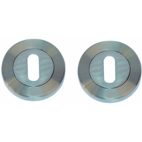 Paire de rosaces modèle LISA/AVRON. Un modèle design et sobre pour un intérieur chic et raffiné. Coloris/finition : Mat chromé. Existe dans un ensemble poignées de porte/rosaces LISA (Réf. 001572374I) et AVRON (Réf. 001652374I)Une grande facilité de montage pour cette rosace ainsi qu’une bonne tenue dans le temps grâce aux vis reliure. La fixation est non visible. Rosace en zamak chrome de ø50 mm avec trou à clé. Fixation : vis bois et vis reliure d’entraxe 38 mm. Contre rosace zamak vissée.