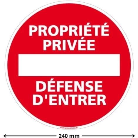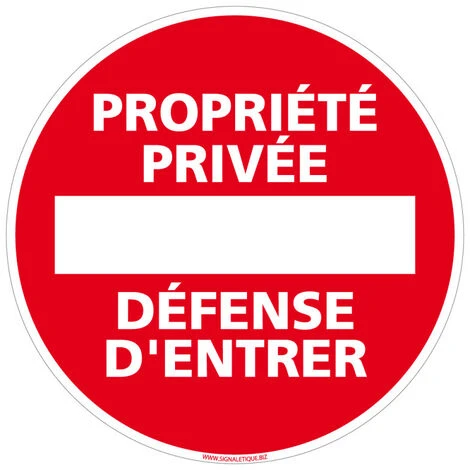 En installant cette signalisation disque propriété privée vous indiquez à tous qu’il est interdit d’entrer sans autorisation sur votre propriété sous peine de sanctions car celle-ci est privée. C’est pourquoi il faut installer sur sa propriété un panneau propriété privée défense d’entrer.