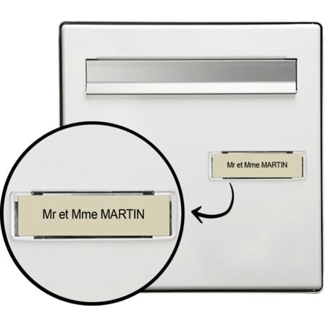 Cette plaque porte-noms pour boite aux lettres est de couleur beige lettres noires. Cette plaque pour boite aux lettres Decayeux format 100 x 25 mm adhésive avec gravure sur 1 ligne est entièrement personnalisable via le configurateur en ligne (icône personnalisation sous la quantité).