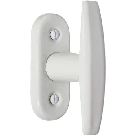 Poignée de fenetre aluminium blanc avec vis entraxe 43 millimetres et carré de 7millimetres et carré, de tyle classique