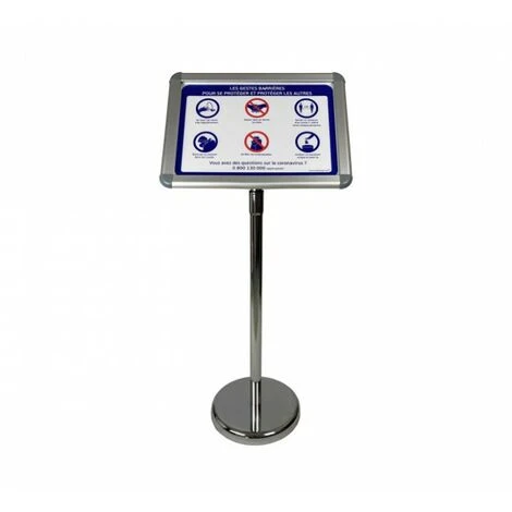 Porte menu en aluminium avec affiche A3 GESTES BARRIÈRES.